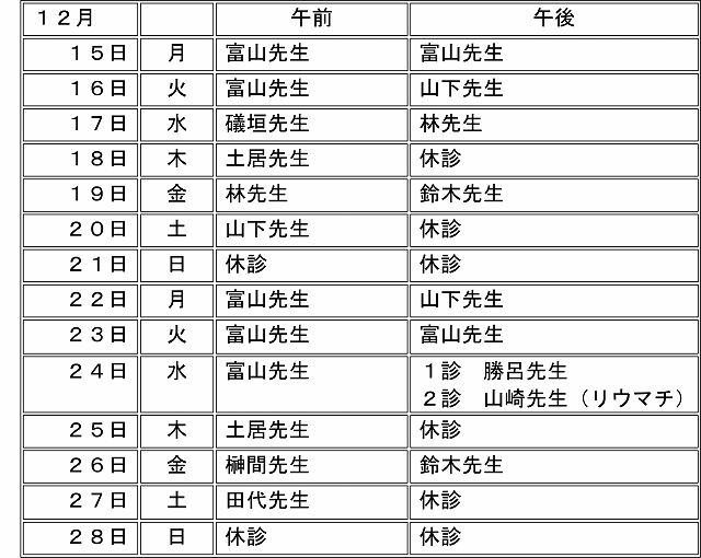 予定が不確定なため、今後、診療日時等の変更が予想されます。