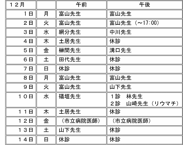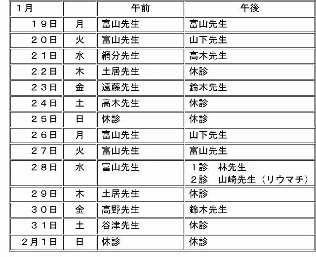予定が不確定なため、今後、診療日時等の変更が予想されます。